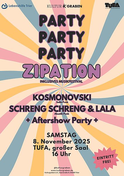 Am 10. November startet in der TUFA Trier eneut die PARTY-zipation. Mit dabei: Alpina weiss Bescheid, Sweat like Chianti und mehr.