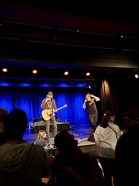 Dieses Jahr stand alles im Zeichen des Punkrocks: Die inklusive Punkband Kosmonovski brachte mit energiegeladenem Sound und klarer Haltung die TUFA zum Beben. Danach übernahmen Schreng Schreng & La La das Ruder – das Akustik-Duo um Jörkk Mechenbier (bekannt von LOVE A und Trixsi) begeisterte mit neuen Songs, Witz und ehrlichen Worten. Mechenbier, der im Vorfeld im Interview mit Tacheles noch augenzwinkernd über Rückenschmerzen, Punk und das Älterwerden sprach, bewies auf der Bühne, dass Punk alles andere als eingerostet ist. Das Interview kann man hier sehen.