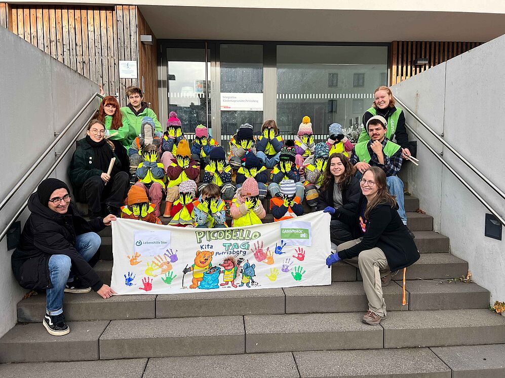 Die Aktion wurde von Greenpeace Trier und der Kita gemacht.