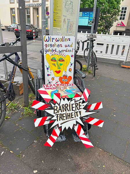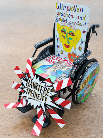 Der Rollstuhl zeigt: Es gibt noch viele Schwierigkeiten im Alltag.