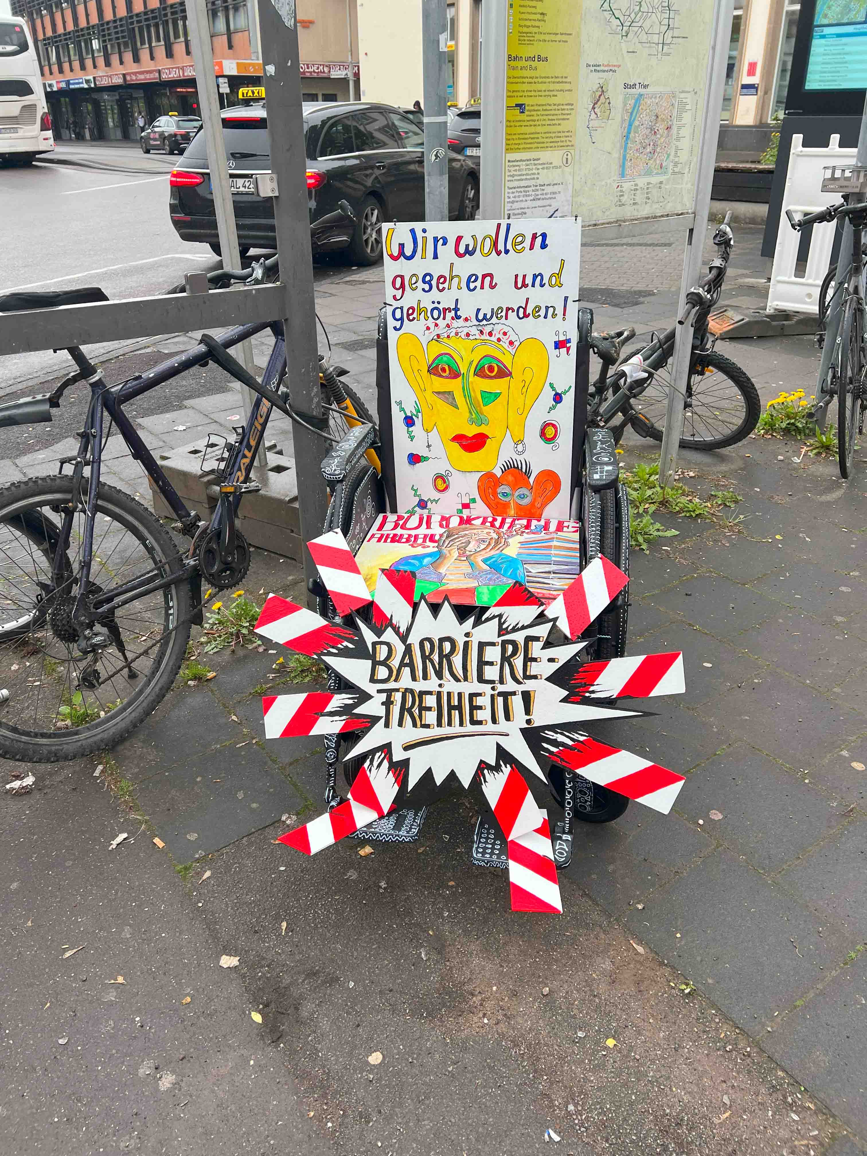 Hier am Hauptbahnhof in Trier steht der Rollstuhl.